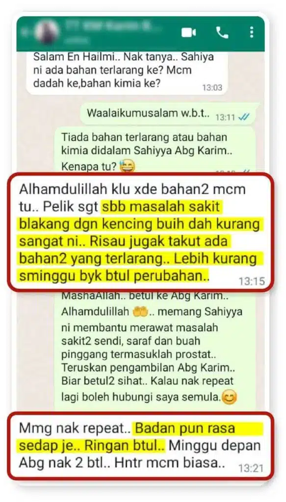 Disclaimer: Apa yang kami nyatakan di web ini adalah benar dan tepat mengikut fakta semasa dan dari ulasan pengguna sebenar. Pengguna dinasihatkan menggunakan produk ini seperti arahan pada produk. Produk ini akan memberi kesan terbaik sekiranya pengguna mengamalkan dengan cara betul berdasarkan banyak testimoni yang diperolehi. Kita berikhtiar, Tuhan yang menyembuhkan