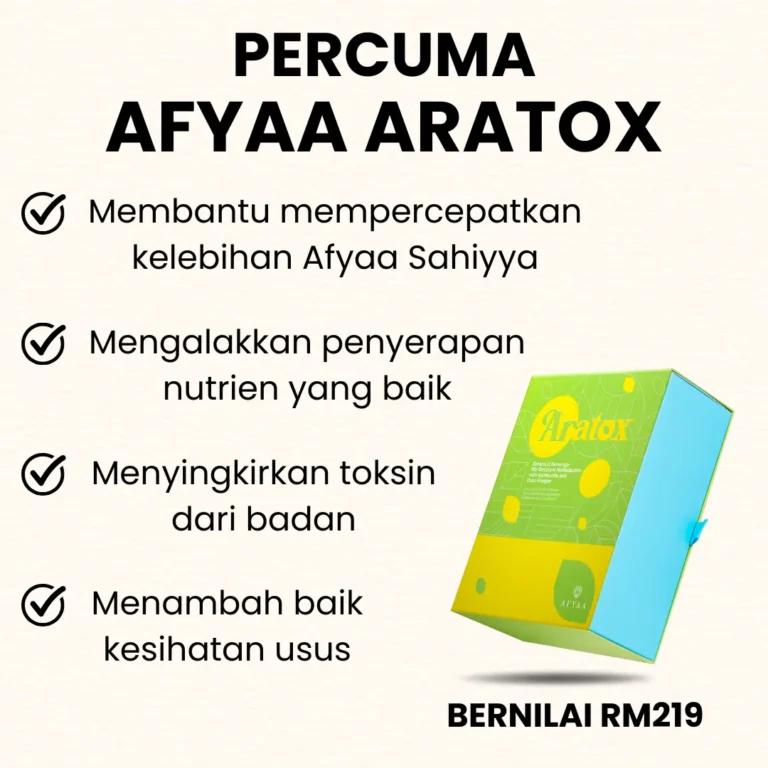 A: Afyaa Sahiyya tersedia untuk diminum terus. Minum 1 sachet atau 2 sachet sehari disarankan sebelum makan. Habiskan semua setelah sachet dibuka.