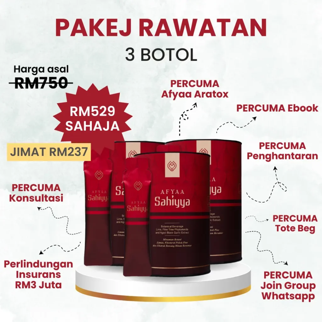 A: Afyaa Sahiyya membantu untuk menyembuhkan penyakit-penyakit kronik, dan dapat tingkatkan tahap kesihatan darah dalam tubuh anda. Amalkan Sahiyya untuk selesaikan masalah penyakit kronik, dan boleh terus diamalkan sebagai suplimen untuk tahap kesihatan yang optimum.